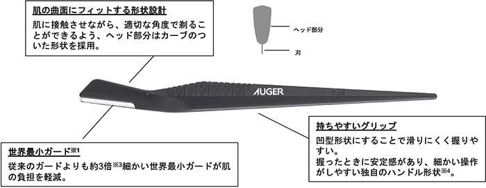 刃物のスペシャリストである貝印が、「身だしなみを整える時間」をより豊かで、より心地良いものへと導くべく誕生したのが、「AUGER」です。乱雑になりがちな洗面台をすっきりと統一するスタイリッシュなブラックのデザインを採用したグルーミングアイテムは、カミソリ、ツメキリ、ハサミなど幅広いツールを取り扱う貝印だからこそ実現できた、ハイパフォーマンスでハイクオリティなラインナップです。煩わしいと感じられがちな「身だしなみを整える時間」が、特別な時間へと変わり、心身をリセットすることで新しい一歩を踏み出すきっかけにしてほしい――「AUGER」を使うことで、そんな機能や価格を超えた価値を提供したいと考えます。