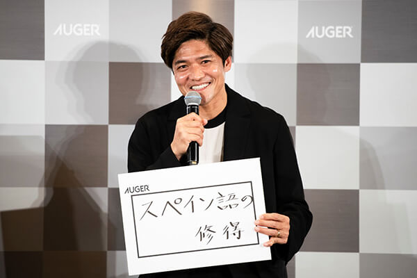 続いて、ステージには「AUGER」ブランドのローンチを飾るスペシャルゲストに、俳優として昨年の大河ドラマ「青天を衝け」を始め、様々なドラマで活躍している板垣李光人さんと、Jリーグ初の3年連続得点王となり日本代表でも活躍した大久保嘉人さんをお迎えしてトークセッションを行いました。当日、お二人は
