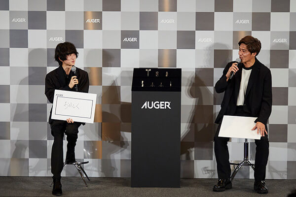 イベントのスペシャルゲストとして、俳優の板垣李光人さんとサッカー元日本代表の大久保嘉人さんをお迎えし、新ブランドローンチをお祝いするとともに、「AUGER」ブランドの世界観に合わせて、魅力を語っていただきました。