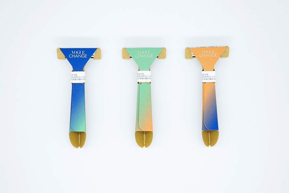 「VOGUE CHANGEコラボレーション 紙カミソリ®」のカラーは、VOGUE CHANGEの象徴的なグラデーションを参考にしています。