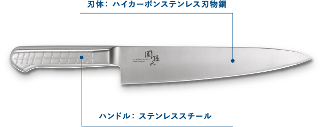 豊富なラインナップで、牛刀は刃渡り300mmまで取り揃えております。