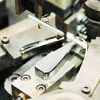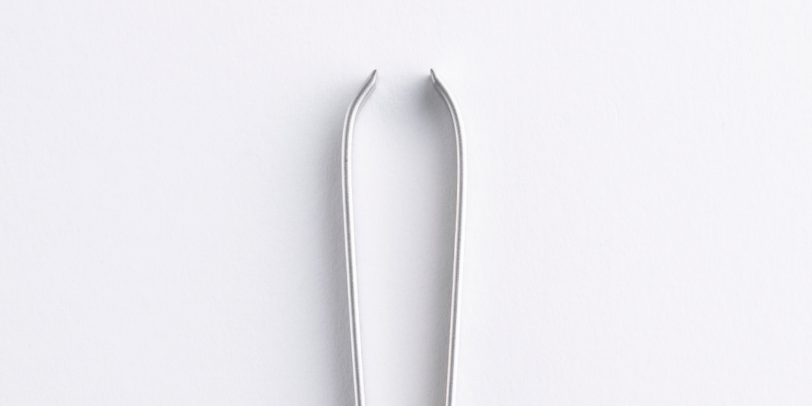 U型は先端が平らで、毛をつまむ幅が広いのが特徴。1枚の板を折り曲げて作るため、先端の長さをそろえるのが実はとても難しいのです。少しでもU字に曲げる位置がズレてしまうと先端に隙間ができてしまい、毛をつまみにくかったり、つまんでも切れてしまったりと不具合が出ます。そのため、まず先端を砥石で研磨し、長さをそろえます。