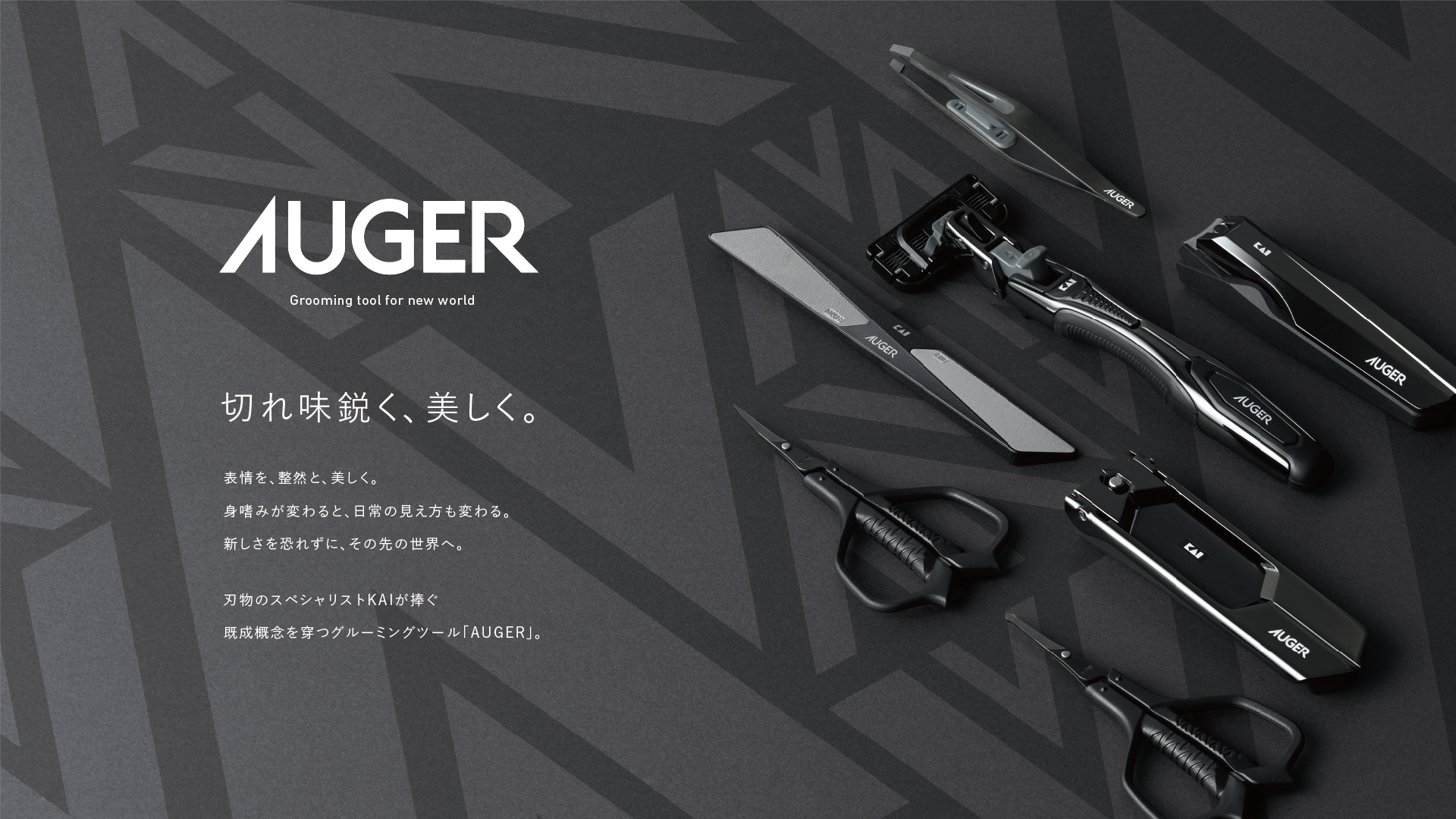 刃物のスペシャリストである貝印が、「身だしなみを整える時間」をより豊かで、より心地良いものへと導くべく誕生したのが、「AUGER」です。乱雑になりがちな洗面台をすっきりと統一するスタイリッシュなブラックのデザインを採用したグルーミングアイテムは、カミソリ、ツメキリ、ハサミなど幅広いツールを取り扱う貝印だからこそ実現できた、ハイパフォーマンスでハイクオリティなラインナップです。煩わしいと感じられがちな「身だしなみを整える時間」が、特別な時間へと変わり、心身をリセットすることで新しい一歩を踏み出すきっかけにしてほしい――「AUGER」を使うことで、そんな機能や価格を超えた価値を提供したいと考えます。