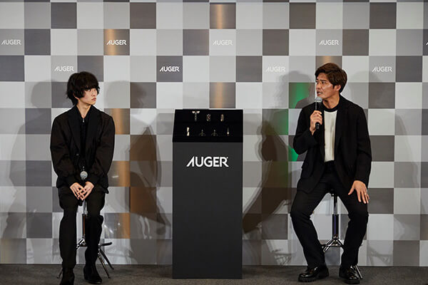 イベントのスペシャルゲストとして、俳優の板垣李光人さんとサッカー元日本代表の大久保嘉人さんをお迎えし、新ブランドローンチをお祝いするとともに、「AUGER」ブランドの世界観に合わせて、魅力を語っていただきました。