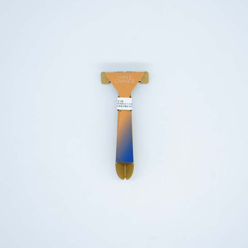 「VOGUE CHANGEコラボレーション 紙カミソリ®」のカラーは、VOGUE CHANGEの象徴的なグラデーションを参考にしています。