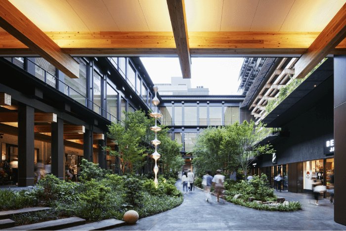 リテールショップとアートギャラリーを含むインスピレーション溢れるロビー、受賞歴のあるパートナーシェフ、ウェス・アヴィラ、ケイティ・コール、マーク・ヴェトリ率いる3つの個性的なレストラン、ホワイトオーク材を使用した広々としたグリッドや庭園の中庭を見渡せる全面ガラス張りの壁など、細部にまでこだわったフレキシブルなイベントスペース、日本初のスタンプタウン・コーヒー・ロースターズのカフェ、緑豊かな中庭など、地元の人々や観光客に友情、発見、文化交流の場を提供しています。