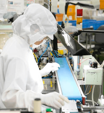 高度な衛生状態を要求される医療用器具の組立や包装は、クリーンルームと呼ばれる部屋で行なわれる。クリーンルームとは、空気中に浮遊する塵や埃の発生率を極力制御した部屋のこと。貝印の工場では、国際統一規格に基づいたクラス100,000というレベルの清浄度を保つクリーンルームを常設しており、この部屋で様々な種類の医療用器具が作られている。