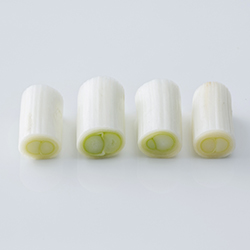 けんには繊維にそって切る“縦のけん”と、繊維と直角に切る“横のけん”があります。桂むきをしたダイコンを重ね、端からごく細いせん切りにすると“縦のけん”になります。これを繊維を断ち切るように切ると“横のけん”になります。双方とも切ったあとは冷水にさらし、しゃきっとしたら水を切りましょう。