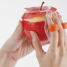 回転フックで固定&手のひらサイズのホールド感。引いても押して剥くことが出来るので、自分のやりやすい剥き方が選べます。