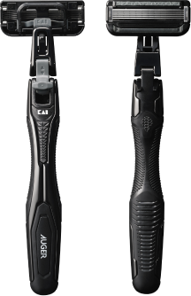 AUGER システムカミソリは、独立サスペンション+3D首振りからなるシームレスフィッティングシステム®により、業界No.1の首振り可動域を実現。これまでにないやさしい肌あたり※2で、快適に深剃りすることができます。