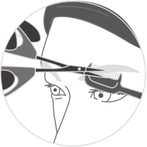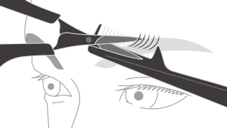 マユ毛をとかして整え、カット時に毛を起こすこともできる。