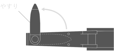 ツメヤスリがテコの内部に内蔵されており、回転させると使用いただくことができます。