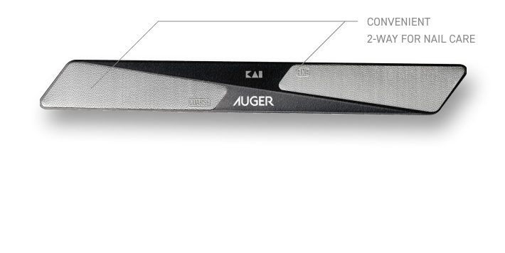 KAIが誇る鋭い刃先と力が伝わりやすい独自機構を併せ持つ高品質ツメキリ。ネイルケアビギナーでも使いやすい2way仕様のネイルファイル。日々のお手入れがより快適になるAUGERのネイルケアシリーズ。