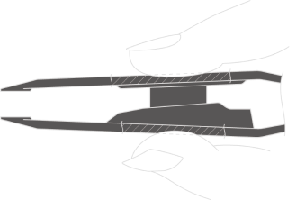横ズレを防止するストッパー※5(特許取得済)と、指にフィットするくぼみ形状で、優れた操作性を実現。