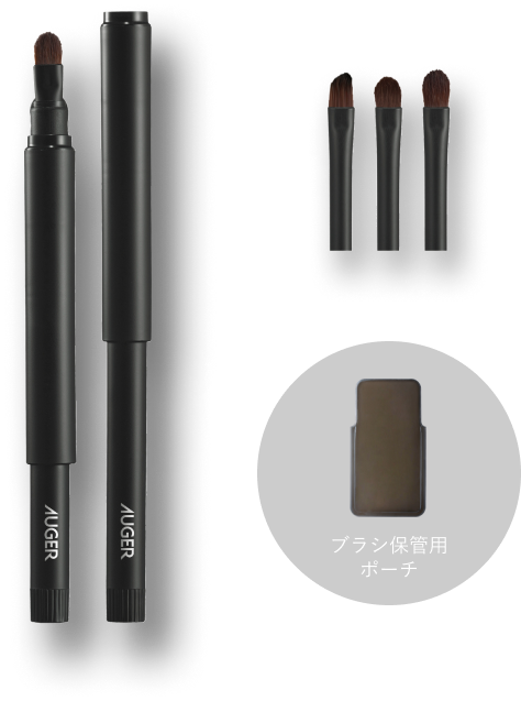 板垣李光人プロデュース メイクブラシ 1本で3種のブラシを付替えできる 持ち運びに便利なスライドキャップ 1つの本体で3種のブラシを交換できるメイクアップブラシ。 ハンドルの底部分を引き下げることでブラシを収納できるスライドキャップを採用。 ブラシ保管用のポーチ付き。