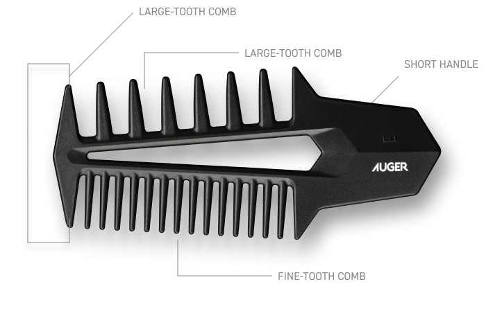 粗目、細目2種のコームでヘアセットが自由にできる。先端部は分け目をつけたヘアスタイリングに便利な形状。