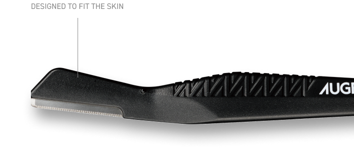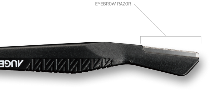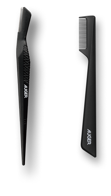 敏感肌にもやさしい世界最小ガードを採用したアイブロー用L型カミソリ。握りやすく使いやすい設計で、カット時に毛を起こしやすいコーム。マユを美しく整えることができるAUGERのアイブローシリーズ。