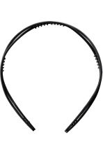 2本のしなやかな樹脂製カチューシャがクロスした構造で、やさしく頭にフィットして髪をホールドする。