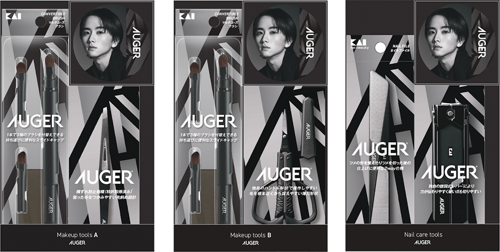 安全性・操作性・安定性を兼ね揃えたお手入れ用ハサミ。KAI独自設計の機構が組み込まれた使用感のよい毛抜き。締め付け感が少なく抜群の使い心地のヘアターバン。普段の表情に大きな変化を与える、AUGERのフェイスケアシリーズ。