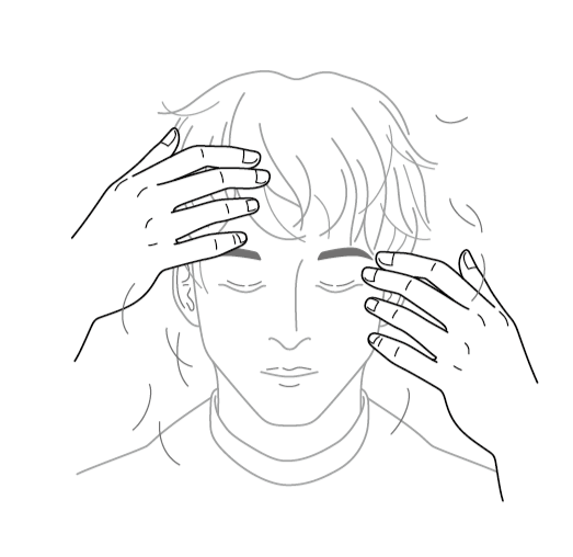 前髪の先端を2箇所くらいつまみ、毛束をつくるイメージでねじります。〈POINT1〉