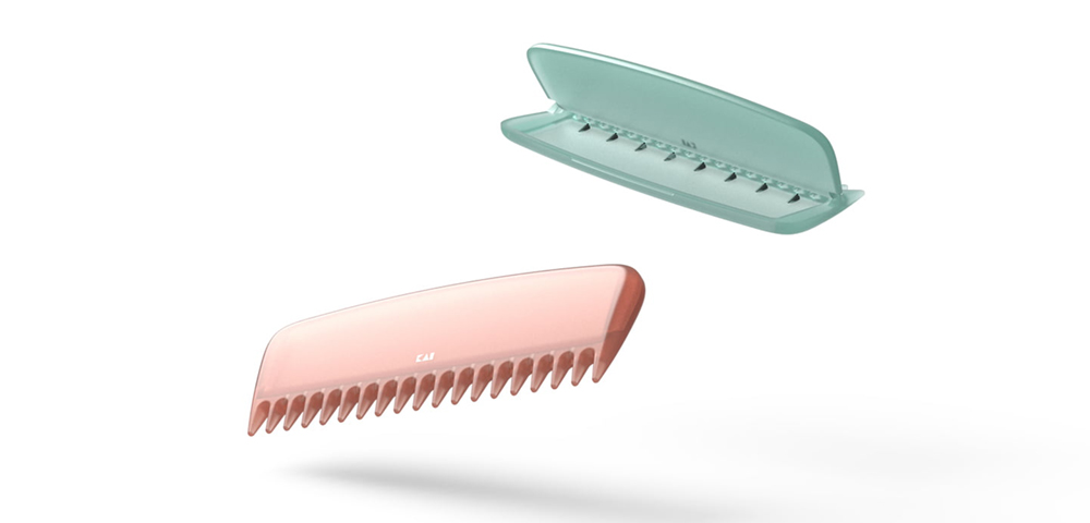 - 内蔵した刃でパウチに穴を開けて挟むことで、中身を絞り出せるバスコーム。コーム形状を生かし、そのまま髪に塗布することが可能。ノンストレスで様々なパウチを試すことができるデザインです。