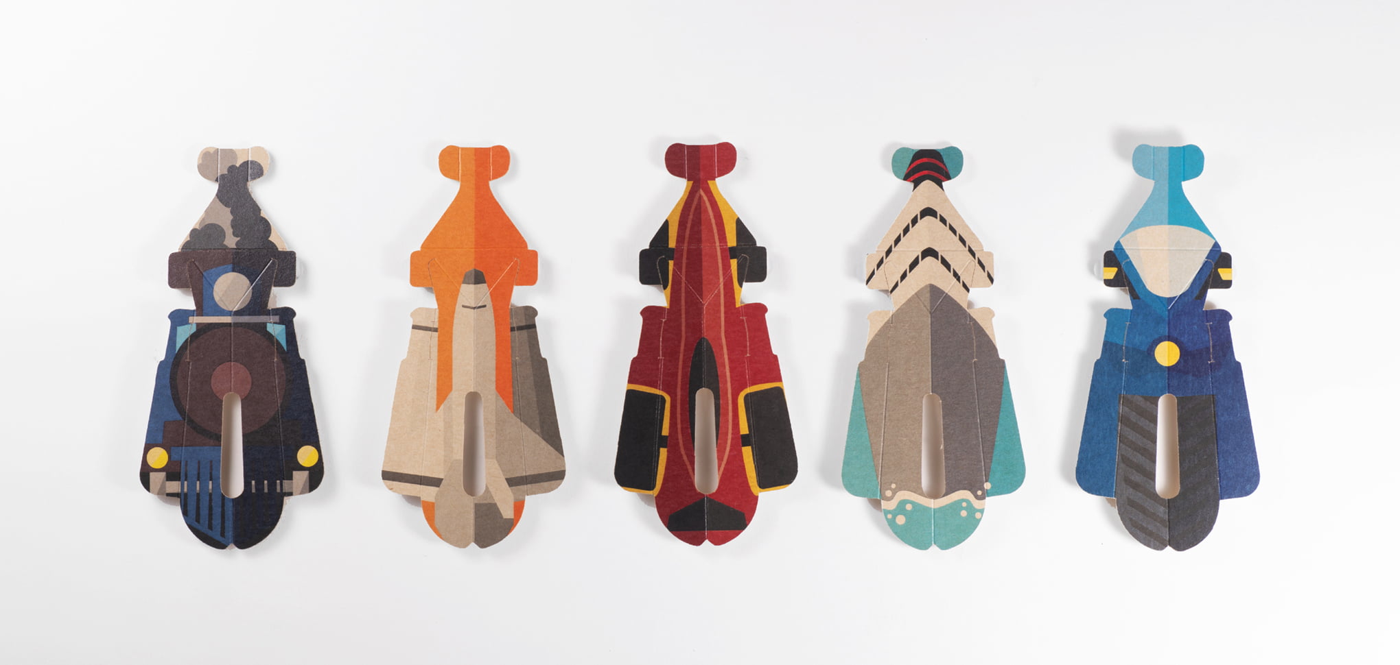 約3mm厚、約4gという持ち運びのし易さと、自由に印刷ができる紙製ならではの性質を合わせ持った紙カミソリ™に、Vehicle=乗りものをカラフルに表現。
