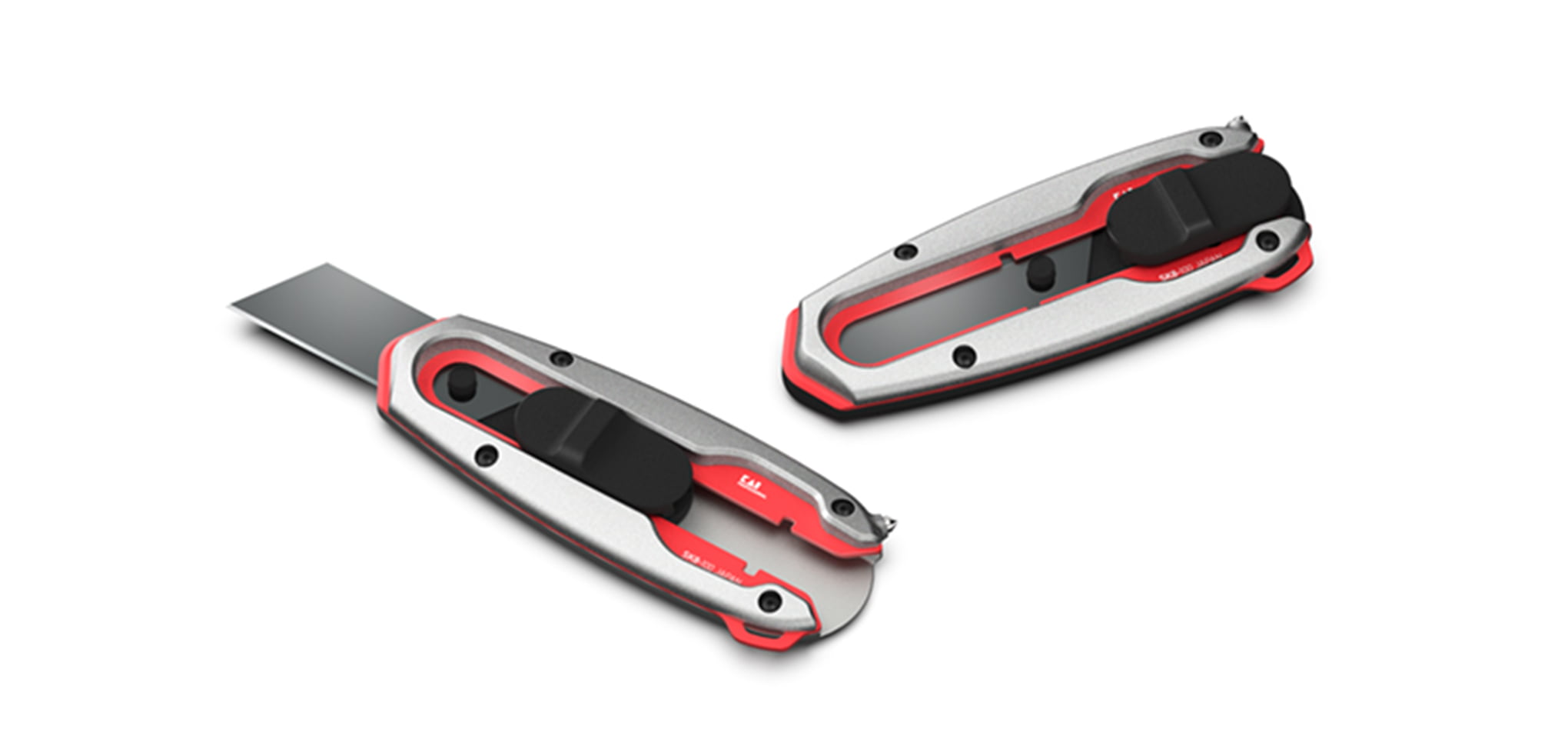 デッキテープ交換工程を一つのツールで完結できる、必要な機能を統合したカッターナイフ。