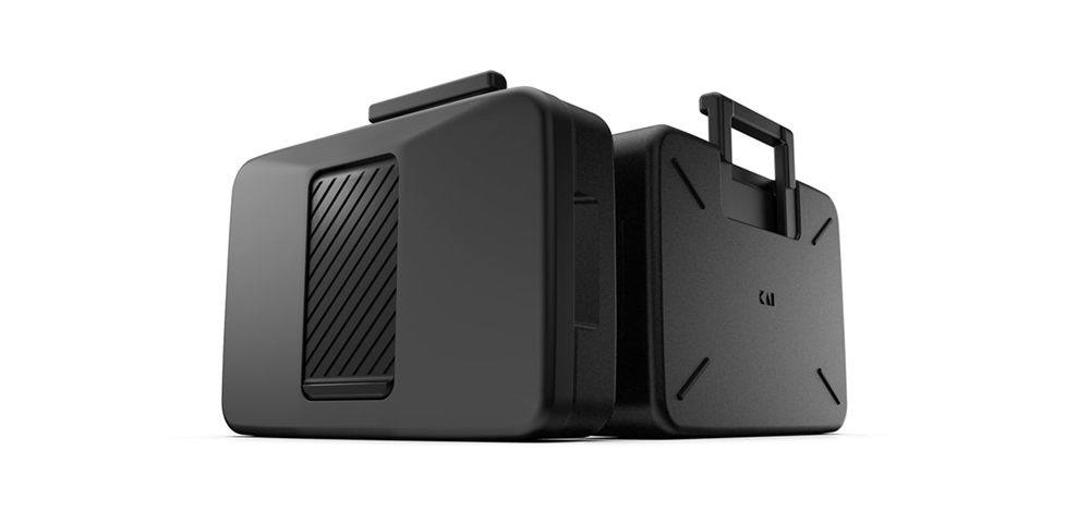 持ち運び用のハンドルは本体に収納できる、一体感のある形状です。